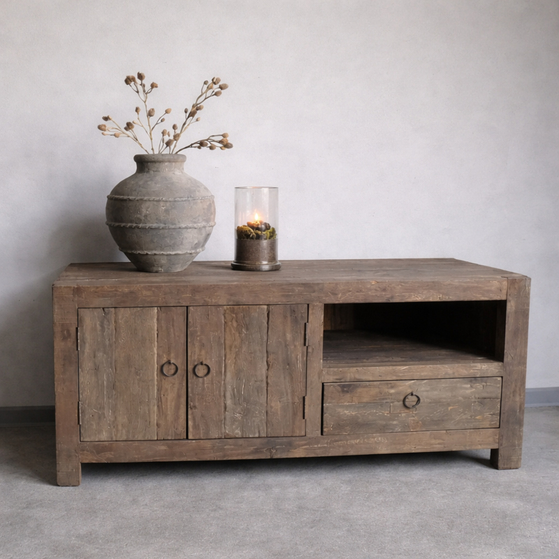 Stoer tvmeubel "Jens" van oud robuust hout 120 cm