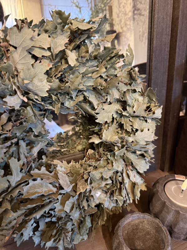 Groene krans van eikenblad 35 cm