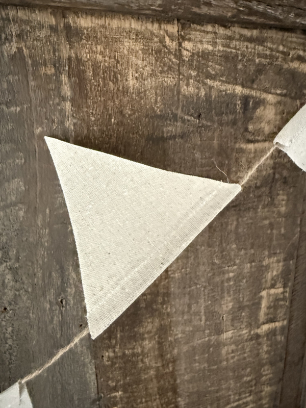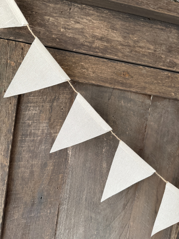 Leuke vlaggetjeslijn van linnen. Leuke sobere versiering of leuk voor op een kinderkamer.