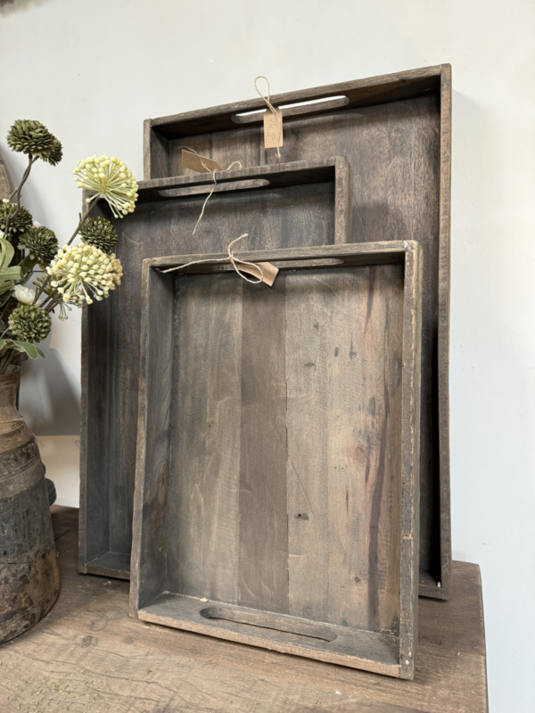 Stoer oud houten dienblad Jens, verkrijgbaar in 3 maten