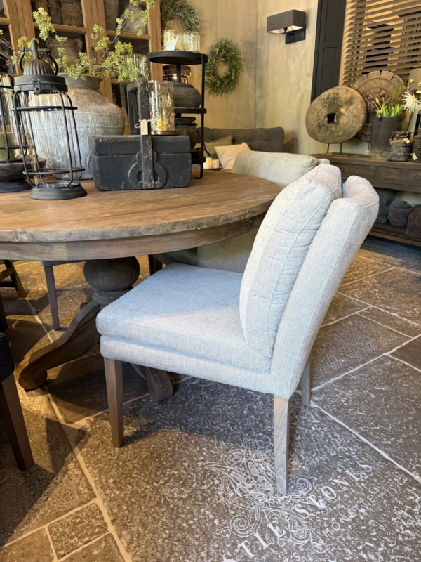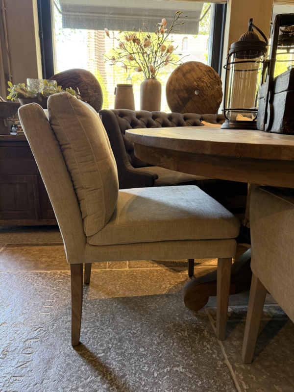 Landelijke eetkamerstoel met een fijn kussen in de rug.